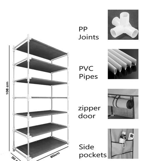 Name: 6 shelves PVC pipe shoe rack Plastic Collapsible Shoe Stand (GRAY), 6 Shelves, DIY ((Do-It-Yourself))