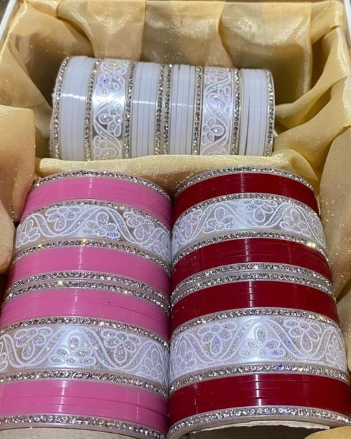 Name: AGRAWAL BANGLES Plastic Cubic Work Chooda Set Beautiful Look Bridal Collection For Women And Girls ( Pack OF Both Hand Chooda Set )