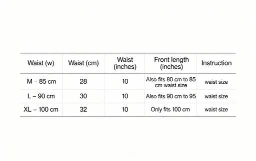 For this underwear, size M has a waist measurement of 85 cm, which is suitable for customers with a waist size between 80 cm and 85 cm. Size L has a waist measurement of 90 cm and comfortably fits buyers with a waist size between 90 cm and 95 cm. Size XL has a 100 cm waist and is designed to fit only those with a 100 cm waist size for a more precise fit.