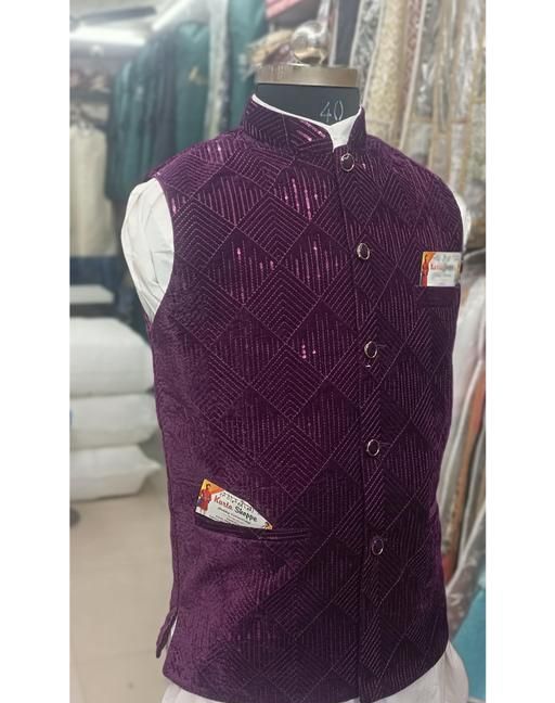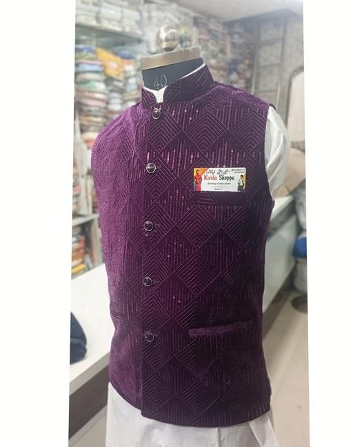 VELVET SEQUENCE KOTI FOR MENS NEHRU JACKET PARTY WEAR