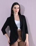 Women's Single Breasted Relaxed Fit Mandarian Collar 3/4 Sleeve Black Blazer