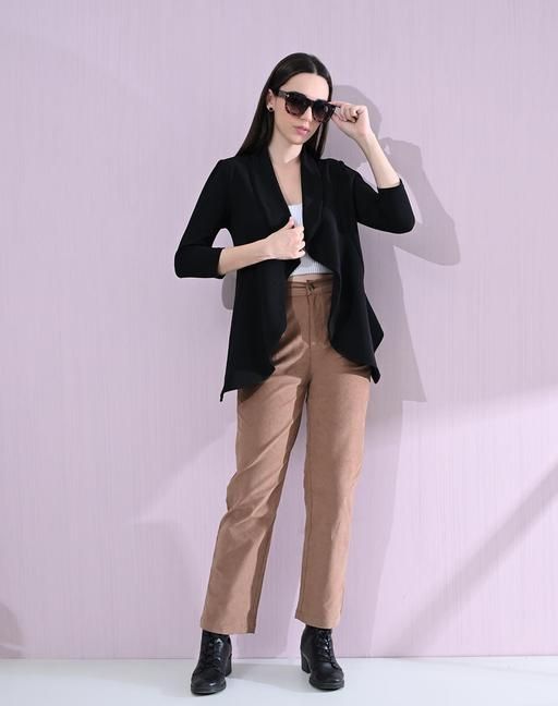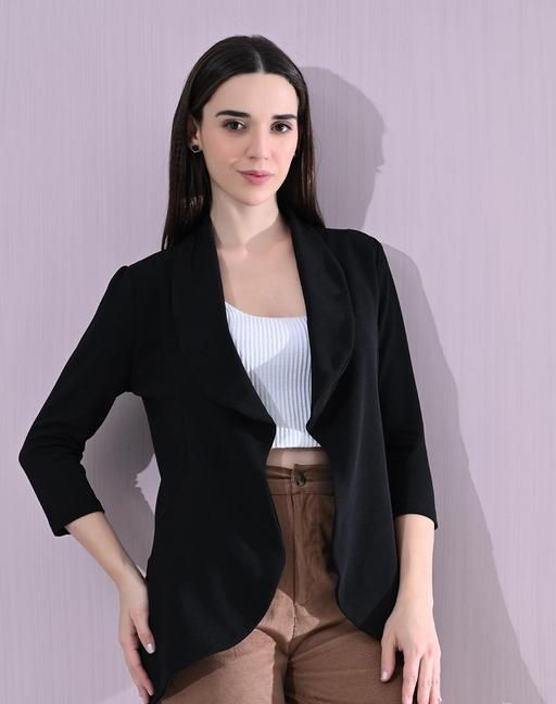 Cut to a relaxed silhouette, this green blazer from OWL MINK is perfect for a day out. Made from polycotton fabric, this blazer has regular fit for your convenience. Featuring a Mandarian collar, 3/4 sleeves and solid pattern, this blazer possesses a stylish enchantment. Team this blazer with a pair of contrast pants and ballerinas for a chic look.#Women's Stylish Blazer #Trendy Women's Blazer, #Girl's Stylish Blazer #Casual Blazer For Women #Solid Blazer For Women #Women's Formal Blazer, #Single Breasted Blazer For Women #Blazer