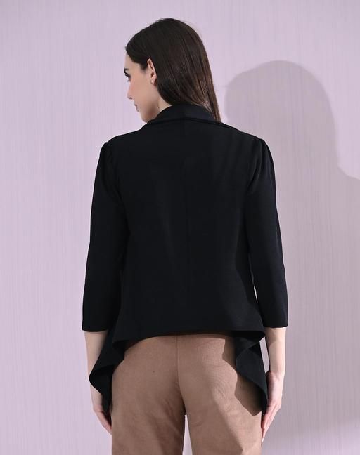 Name: Women's Single Breasted Relaxed Fit Mandarian Collar 3/4 Sleeve Black Blazer
