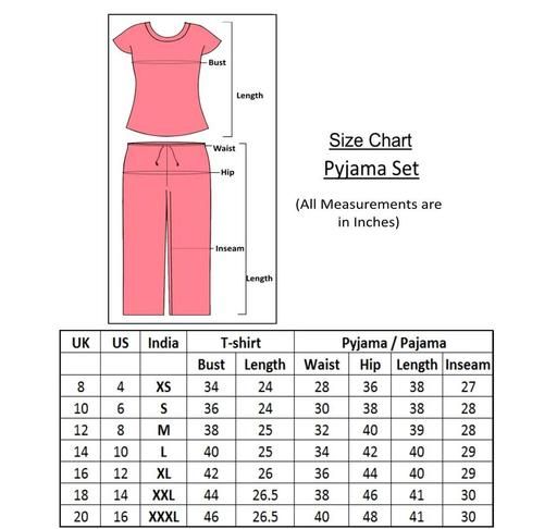 XL (Top Bust Size: 42 in, Top Length Size: 25 in, Bottom Waist Size: 44 in, Bottom Length Size: 40 in)