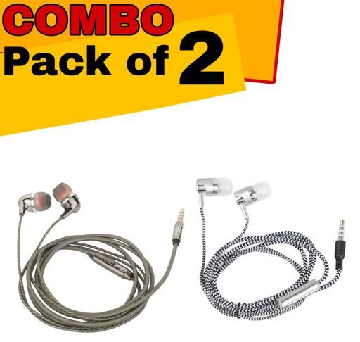 Name: Wired headphones & earphone combo pack of 2pc (Grey & White) Stereo speakers with loud bass