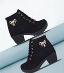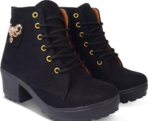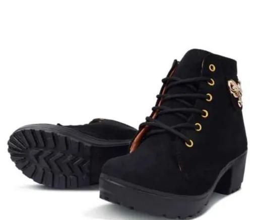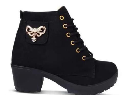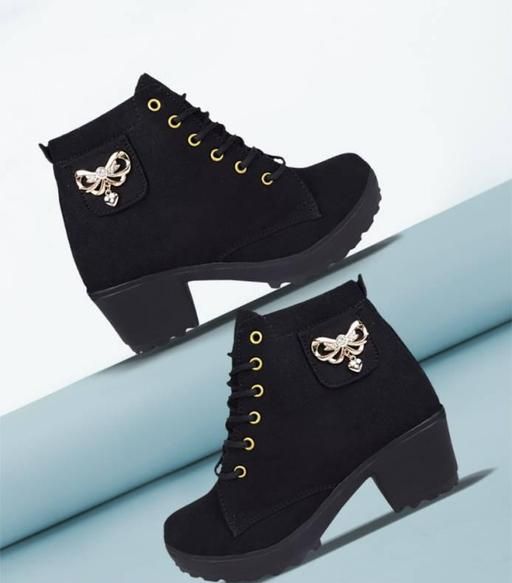 Step into style with these fashionable black ankle boots, featuring a sleek lace-up design and an elegant bow embellishment. Made from premium faux suede, these boots are perfect for casual outings, parties, or even winter adventures. The sturdy sole ensures long-lasting comfort, while the chic design adds a bold statement to any outfit. Pair them with jeans, skirts, or dresses to create a versatile and trendy look. Add these must-have boots to your collection and enjoy the perfect combination of style and comfort.Premium faux suede material.Trendy lace-up design with embellishments.Durable and comfortable sole.Versatile styling for casual or partywear.Available in multiple sizes.Black boots for women, stylish women boots, ankle boots, lace-up boots, winter boots, trendy women footwear, affordable women boots.