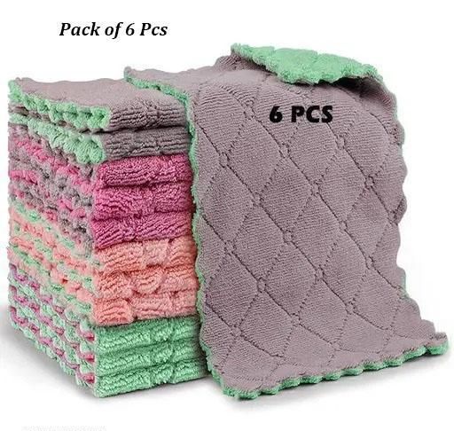 Name: Microfiber Printed Cloth - Pack of 6 PCS Absorbent Cleaning Cloth; Lint Free; Streak Free for Kitchen; Bathroom; Furniture; Wood; Glass & Mirrors (25 * 25 cm) (Random Colors) Reusable Dish Towels, Kitchen Non-Stick Oil Washing Kitchen Rag Household Tableware Cleaning Wiping Tools NAPKIN Dish Towel