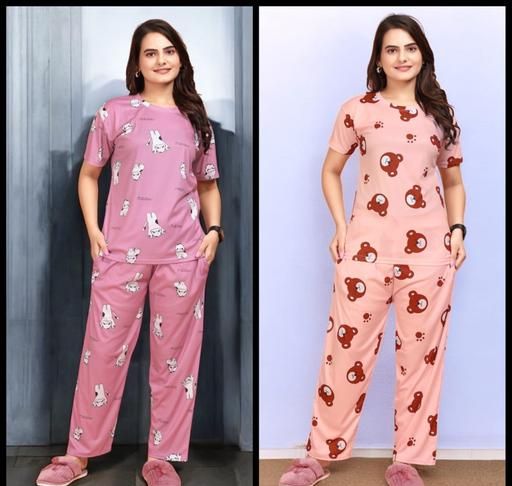 Name: Women Printed Co-Ords Set Night Suit And Night Dress T-Shirt Pyjama combo on lowest price