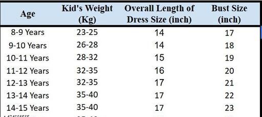 8-9 Years (Kids Weight (In Kgs): 32-35 in, Length Size: 25 in, Bust Size: 17.5 in)