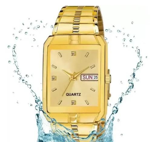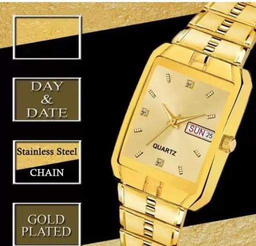 Name: All Gold Day & Date Functioning Long Life Black Plated Chain Analog Watch For Men