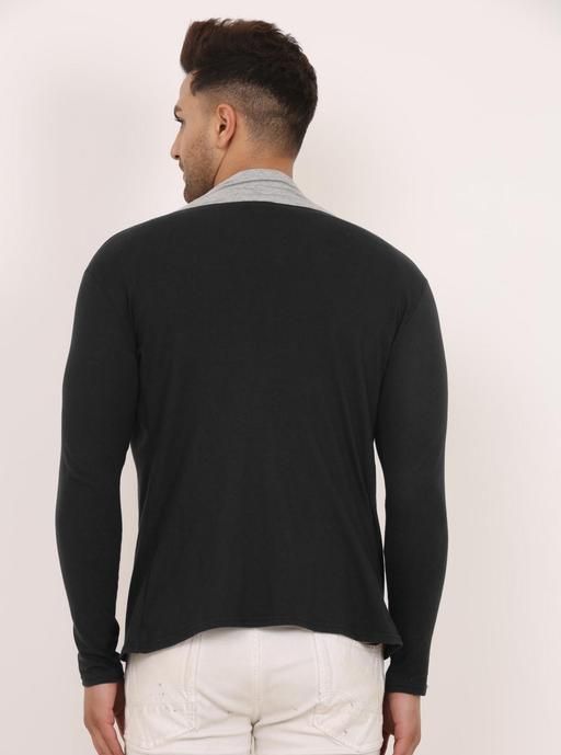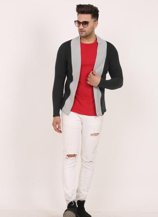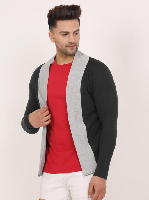 Upgrade your wardrobe with this stylish men's shrug, designed for both summer and winter wear. Made from a high-quality cotton blend fabric with a 160 GSM thickness, it offers a lightweight yet durable feel. The open-front design adds a trendy touch, making it perfect for layering over casual and semi-formal outfits. The fabric is carefully processed to prevent bleeding, ensuring long-lasting color vibrancy even after multiple washes. The contrast inner lining enhances its appeal, giving a modern edge to your everyday look. Whether you're heading out for a casual day or need an extra layer in cooler weather, this full-sleeve shrug is a versatile addition to your collection. Pair it with jeans, joggers, or chinos for a fashionable statement.