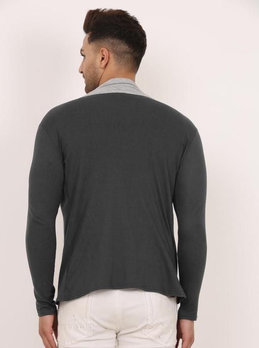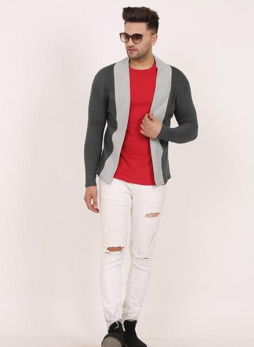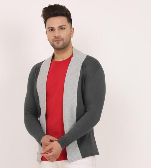 Upgrade your wardrobe with this stylish men's shrug, designed for both summer and winter wear. Made from a high-quality cotton blend fabric with a 160 GSM thickness, it offers a lightweight yet durable feel. The open-front design adds a trendy touch, making it perfect for layering over casual and semi-formal outfits. The fabric is carefully processed to prevent bleeding, ensuring long-lasting color vibrancy even after multiple washes. The contrast inner lining enhances its appeal, giving a modern edge to your everyday look. Whether you're heading out for a casual day or need an extra layer in cooler weather, this full-sleeve shrug is a versatile addition to your collection. Pair it with jeans, joggers, or chinos for a fashionable statement.