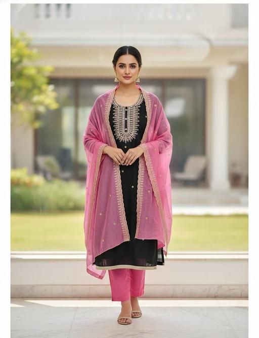 Name: NEW TRENDY BLACK CHANDERI DRESS MATERIAL
