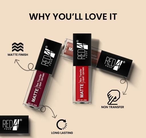 Name: Red4 Miss Perfect Liquid Lip Cream | Non Transfer Liquid Lipstick | Matte Finish | Long Lasting and Waterproof Liquid Lipstick