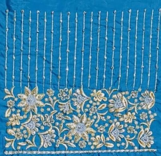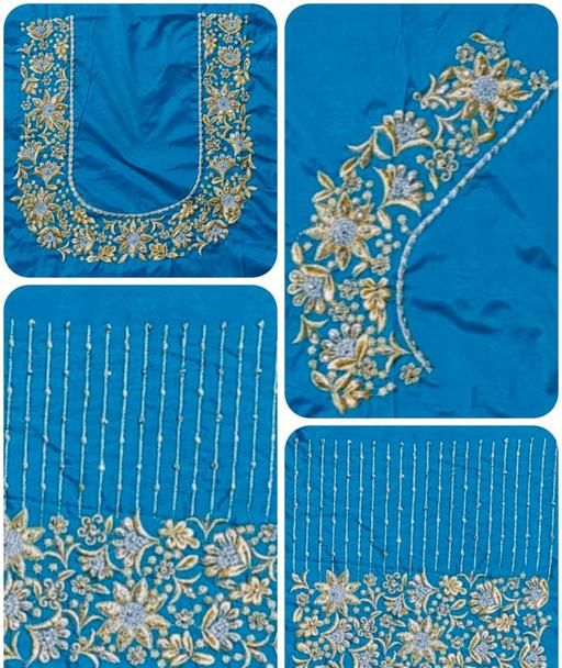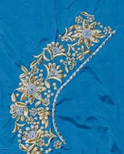 Name: SOUTH MOR PIECE Aqua blue AKU PATTU (COTTON SILK) TRADITIONAL INDIAN LATEST VERY BEAUTIFUL EMBROIDERED&COMPUTER WORK DISIGN BLOUSE PIECEAQUA BLUE BLOUSE PIECE || EMBROIDERED JARI WORK