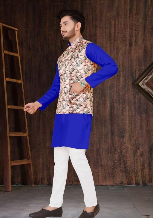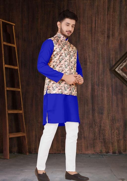 Name: (Kurta Set With Koti_)Our New And Latest Primuim Quality Kurta Set With Nehru Koti For Man Top Fabric: Cotton Blend Bottom Fabric: Cotton Blend Scarf Fabric: No Scarf Sleeve Length: Long Sleeves Bottom Type: Straight Pajama Stitch Type: Stitched Pattern: Solid Sizes: M (Chest Size: 36 in, Top Length Size: 38 in, Bottom Waist Size: 36 in, Bottom Hip Size: 36 in, Bottom Length Size: 37 in) L (Chest Size: 38 in, Top Length Size: 40 in, Bottom Waist Size: 38 in, Bottom Hip Size: 38 in, Bottom Length Size: 39 in) XL (Chest Size: 40 in, Top Length Size: 42 in, Bottom Waist Size: 40 in, Bottom Hip Size: 40 in, Bottom Length Size: 42 in) XXL (Chest Size: 42 in, Top Length Size: 42 in, Bottom Waist Size: 42 in, Bottom Hip Size: 42 in, Bottom Length Size: 42 in) Country of Origin: India