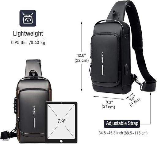 Name: Multipurpose Crossbody Sling Bag For Men Women, Anti-Theft Fashion Chest Bag with USB Charging Port, Messenger Bags, Waterproof Casual Shoulder Bag