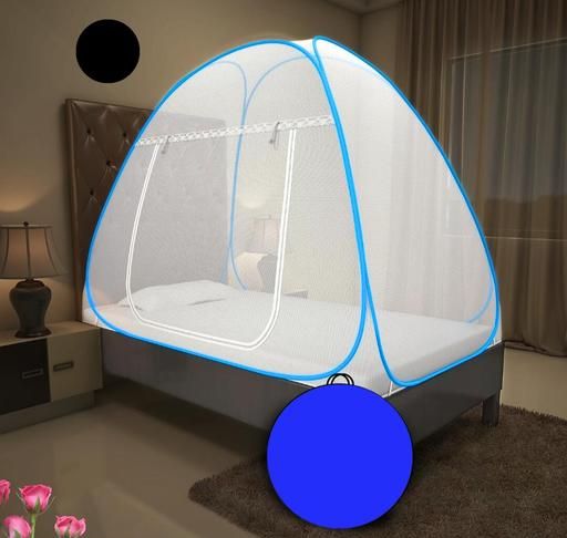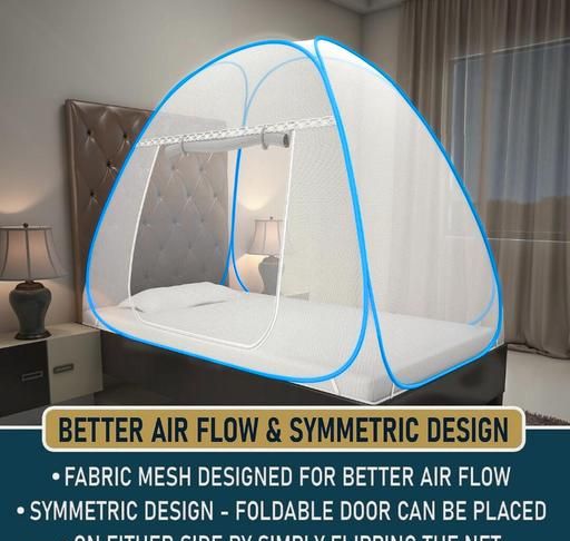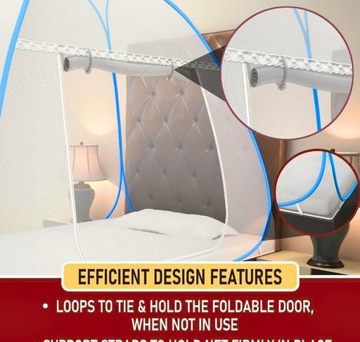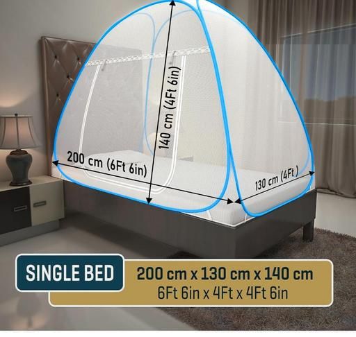 SIZE & DESIGN - Our mosquito net is easily starched and opens up to an area of 6.5*4 feet. Making it cover the entire singel bed and singel size bed. It is easily comfortable for 1 adults and 2 boy. The machardani has a pop up design.