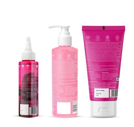 The Expert Pack combines the power of Hibiscus Bond Repair Advanced Hair Oil, Shampoo, and Conditioner to repair, rebuild, and nourish hair from within. Infused with 12 nutrient-packed oils and Keratin, the oil deeply conditions the scalp and strands, restoring moisture and adding shine. The shampoo, with FiberHance™, Plant Keratin, and Ceramide Complex, strengthens hair, reduces breakage, and seals in moisture. The conditioner, enriched with TechnoHYAL Hair Complex and Hibiscus Extract, deeply hydrates and repairs damaged bonds while keeping hair smooth, frizz-free, and manageable. Together, these products work synergistically to revitalize all hair types, addressing concerns like dryness, frizz, split ends, heat damage, and weak, brittle strands for healthier, stronger, and shinier hair.
