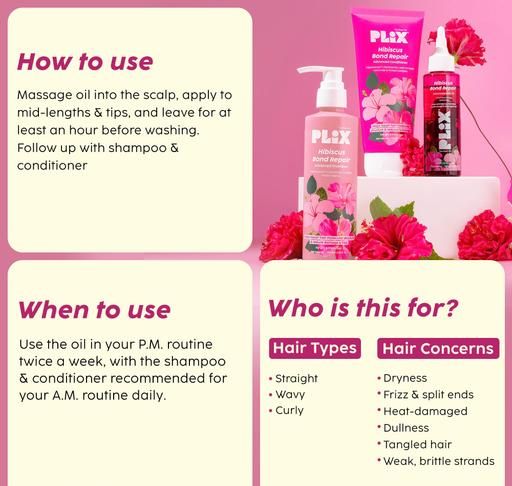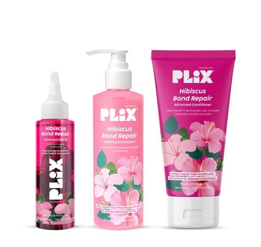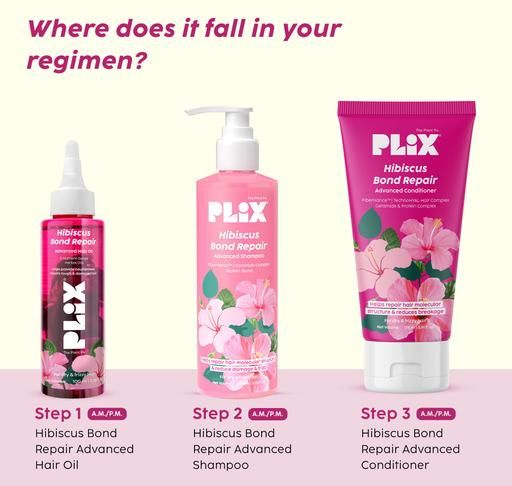 Product Name: PLIX - THE PLANT FIX Hibiscus Bond Repair Advanced Oil, Shampoo & Conditioner | Repairs Damaged Hair Due To Heat Styling | Restores Strength, Reduces Frizz & Split-Ends