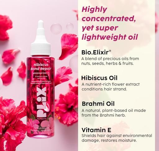 Product Name: PLIX - THE PLANT FIX Hibiscus Bond Repair Advanced Hair Oil for Damaged Hair - 100ml | Repairs Damaged Hair Due To Heat Styling | Restores Strength & Reduces Breakage