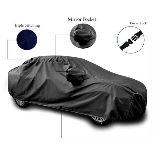 Name: Fexsun Car Cover for -Swift Dzire - Water Resistant & Dustproof - With Mirror Pockets Triple Stitched - Light Weight - Heavy Buckle Black Color)