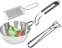 Name: Urban Elegance Tadka Pan | Unbreakable Wired Steel Handle Tadka Pan | Chowka Pan Kadai Vagariya | Aluminium Tadka Kadhai with Steel Handle | Kitchen Tools Combo of Tadka Pan with Steel Utility Pakkad Utensils Holder and Small Cheese Grater