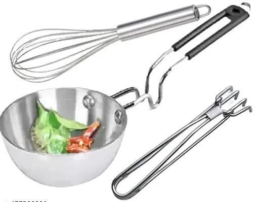 Name: Urban Elegance Tadka Pan | Unbreakable Wired Steel Handle Tadka Pan | Chowka Pan Kadai Vagariya | Aluminium Tadka Kadhai with Steel Handle | Kitchen Tools Combo of Tadka Pan with Steel Utility Pakkad Utensils Holder and Steel Coil Whisk Beater Egg Beater