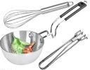 Urban Elegance Tadka Pan | Unbreakable Wired Steel Handle Tadka Pan | Chowka Pan Kadai Vagariya | Aluminium Tadka Kadhai with Steel Handle | Kitchen Tools Combo of Tadka Pan with Steel Utility Pakkad Utensils Holder and Steel Coil Whisk Beater Egg Beater