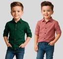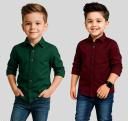 Name: YYQ's Boys Regular Fit Solid Spread Collar Casual Trendy Shirt, Attractive Black And Maroon Shirt For Boys, FANCY KIDS SHIRT, Fabulous Black Shirt For Boys, TRENDY BRANDED KIDS FULL SLEEVE SHIRT, Baby boy shirts pack of 2, Kids Shirt Pack of 2,