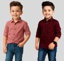 Name: YYQ's Boys Regular Fit Solid Spread Collar Casual Trendy Shirt, Attractive Black And Maroon Shirt For Boys, FANCY KIDS SHIRT, Fabulous Black Shirt For Boys, TRENDY BRANDED KIDS FULL SLEEVE SHIRT, Baby boy shirts pack of 2, Kids Shirt Pack of 2,
