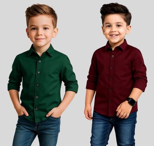 Name: YYQ's Boys Regular Fit Solid Spread Collar Casual Trendy Shirt, Attractive Black And Maroon Shirt For Boys, FANCY KIDS SHIRT, Fabulous Black Shirt For Boys, TRENDY BRANDED KIDS FULL SLEEVE SHIRT, Baby boy shirts pack of 2, Kids Shirt Pack of 2,