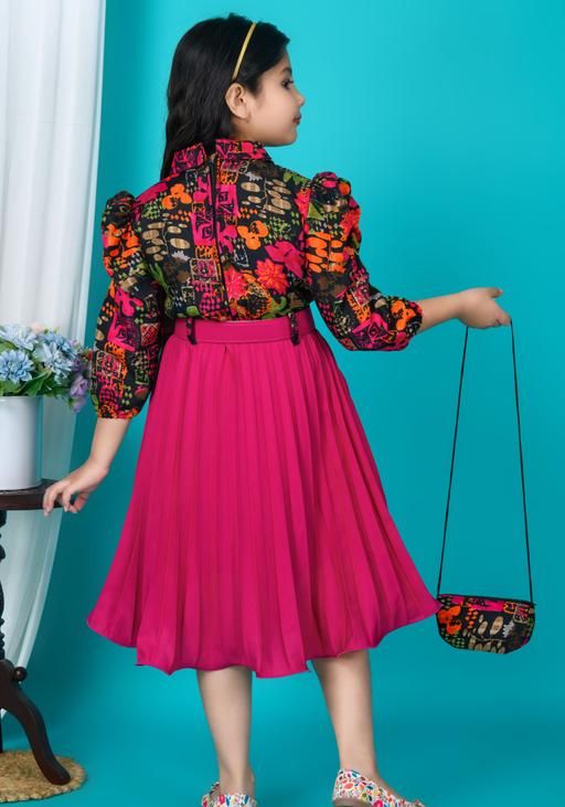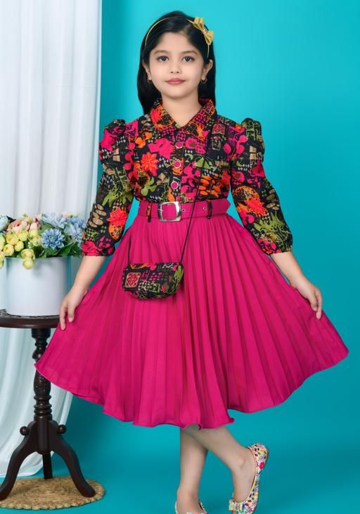 New stylish floral Baby Girls Dress/Frocks , with same design Bag and Belt Perfect Kids Frock,