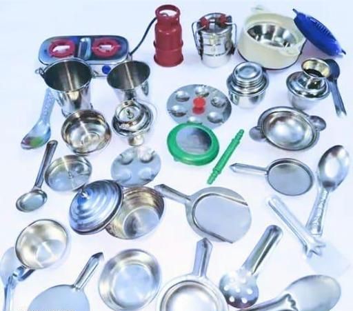 Name: SKK Mini Kitchen Set, Kitchen Set for Girls, Real Cooking Kit for Play, Steel Kitchen Set for Girls, Miniature Cooking Set for Kids, Mini Kitchen Set choppu jaman Indoor Game, Best for Gift/Return Gift – Stainless Steel and Plastic