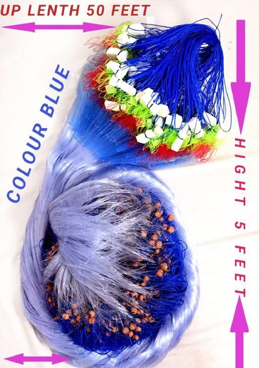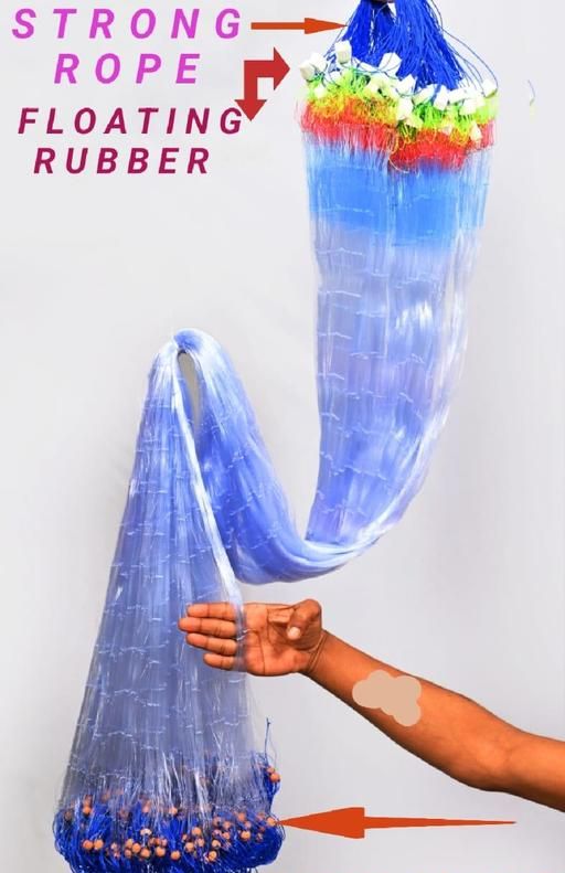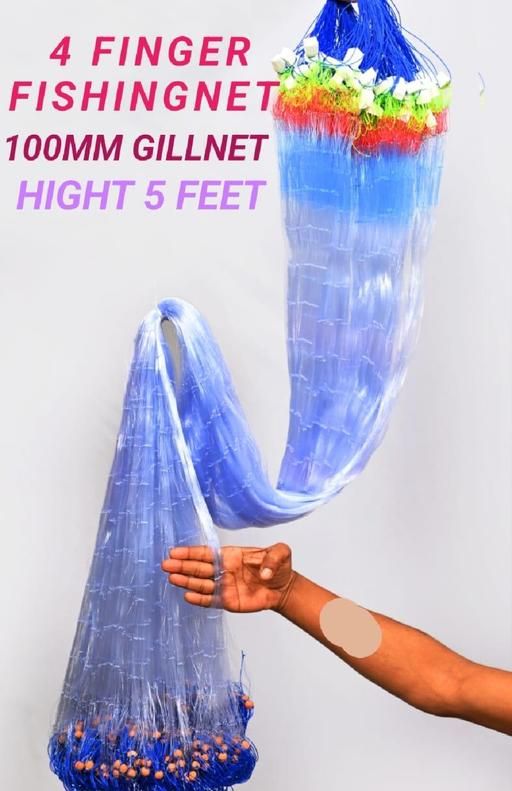 The gill fishing net with 100mm nylon thread and mud sinker weighs 300gm and has a height of 5 feet. It comes in a blue color with a precise mesh gap and includes a sturdy rope for easy handling. This fish net jaal is designed to catch big fish and is best suited for use in ponds, rivers, lakes, and oceans.