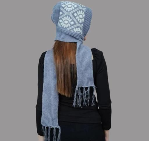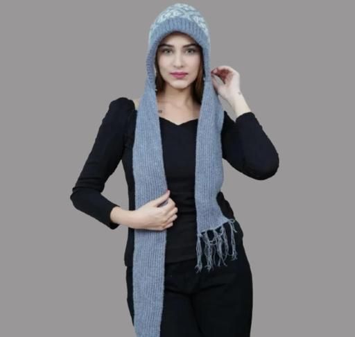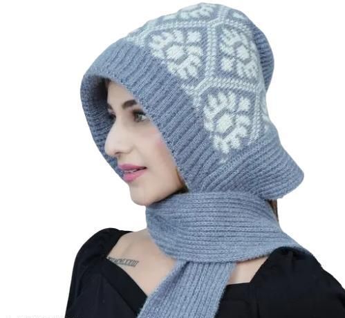 Name: Women Winter Cap with Attached Muffler Knitted Woolen Cap with Lovely Scarf, Beautifully Designed Protect Ear & Neck from Cold Winds Stylish Girls Cap Fabric: Acrylic Pattern: Printed Net Quantity (N): 1 Sizes: Free Size (Length Size: 2 m) Country of Origin: India
