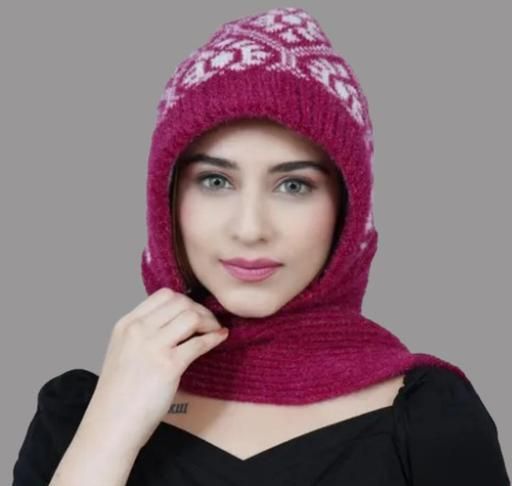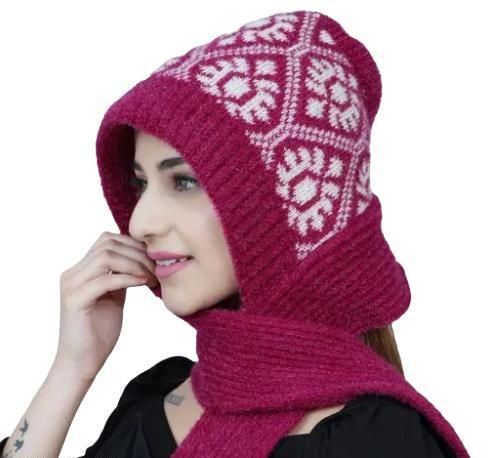 Name: Women Winter Cap with Attached Muffler Knitted Woolen Cap with Lovely Scarf, Beautifully Designed Protect Ear & Neck from Cold Winds Stylish Girls Cap