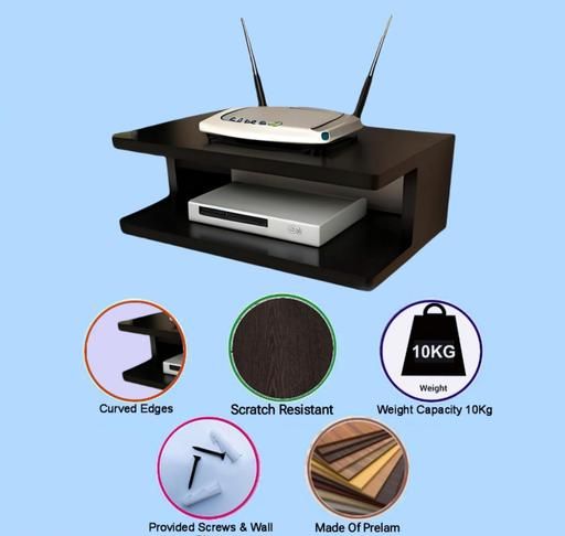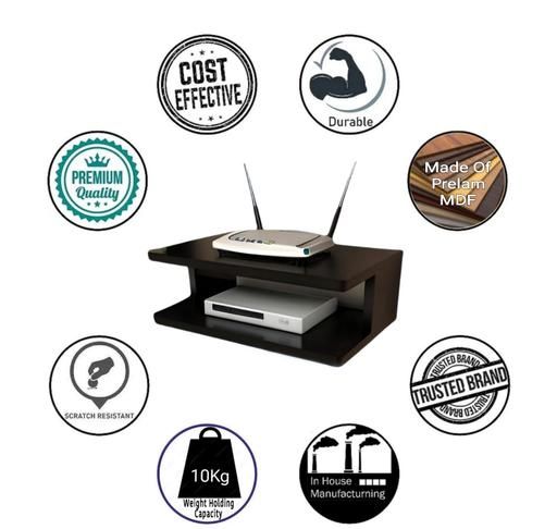 Name: Dime Store Engineered Wood Set Top Box Stand TV Stand WiFi Router Rack Wall Shelf for Living Room Stylish Hanging Rack Organizer Shelf Furniture (Black)