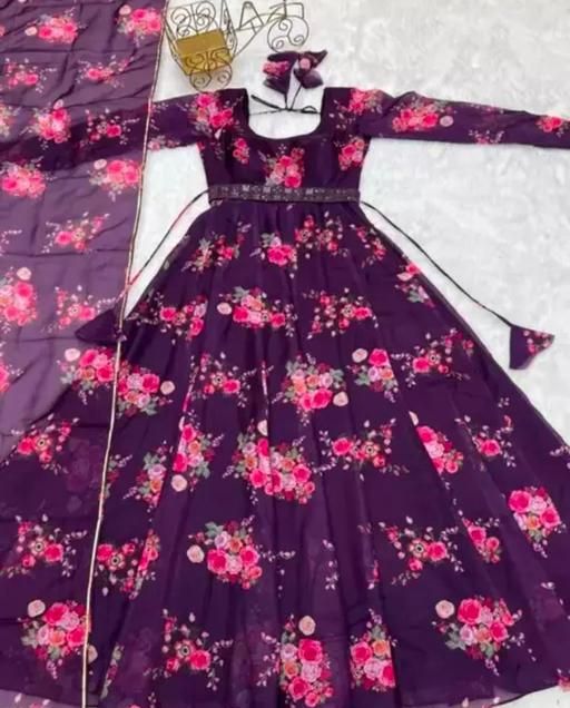 Name: Flower Print Long Kurti With Dupatta (No Bottomwear)