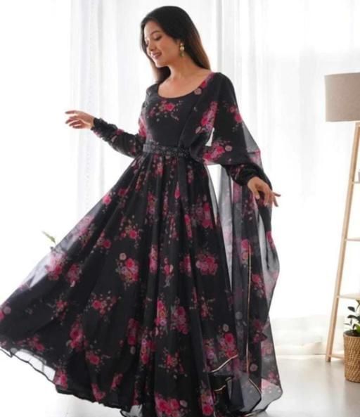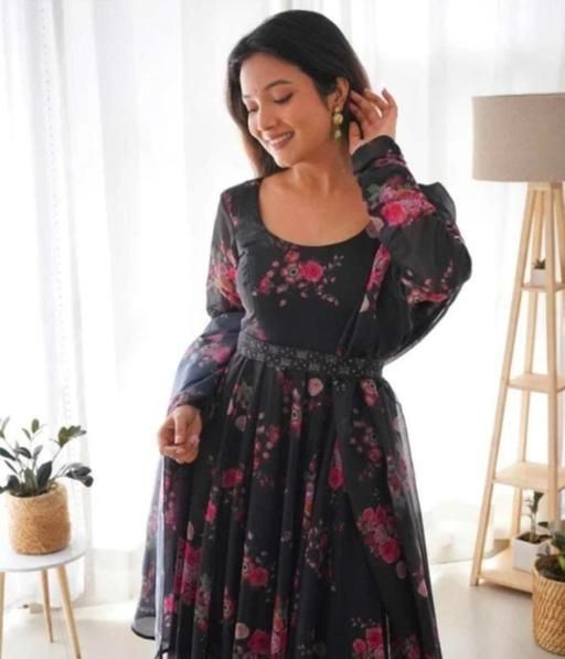 Flower Print Long Kurti With Dupatta (No Bottomwear)