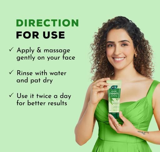 There’s a valid reason why Neem has been the unfailing ingredient found in every Indian household. Since time, Neem is known mostly for its 3 benefits - Cleansing impurities, soothing skin irritations & enhancing the natural glow of skin. The Joy Pure Neem Skin Purifying Face Wash is enriched with herbal actives that contain active salicylates that fight severe acne and breakouts. It reduces spots, marks and other skin conditions while washing away excess oil from the skin surface without over-drying it. Due to its antioxidant properties, Neem offers protection against harmful UV rays, pollution and other environmental factors. The vitamins and fatty acids in Neem improve and maintain the skin elasticity while reducing wrinkles and fine lines.