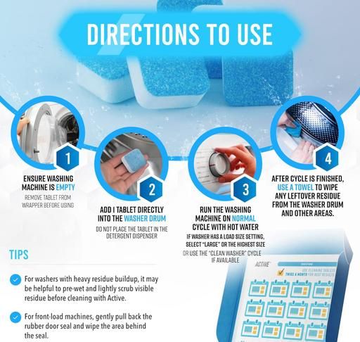 EASY TO USE : Just empty your washer, put 1-3 piece of effervescent table into the drum and carry out "clean washer" cycle, no need to disassemble the washing machine, you can get a fresh and clean washer.