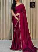 Trending New Satin Silk Saree With Beads And Stone Work Border Lace And Fancy Work Blouse