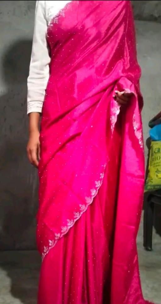 Name: Trending New Satin Silk Saree With Beads And Stone Work Border Lace And Fancy Work Blouse