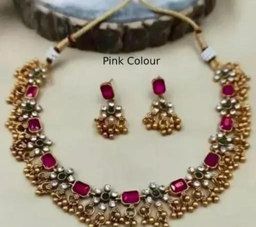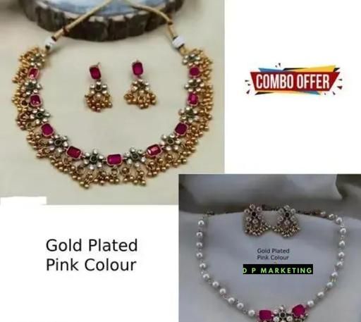 Name: Combo jewellery(Gold Plated Green-Pink Diamond),choker,necklace,jewellery set,indian wedding jewellery set,Maangalyam/Murukku,south,indian,maharastrian,highquality set for women girls