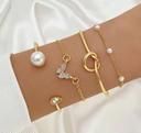 Name: Birthday Gift For Sister Bracelet Set of 4pcs For Women & Girls Gold Color Heart Geometric Charm Open Cuff Bangle
