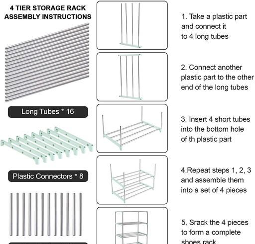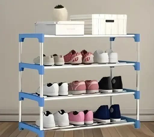 Name: SPDI Multipurpose Portable shoe rack for home storage, Easy to Move & Assemble (PVC and Plastic Rack) (Blue, 4-Shelves)