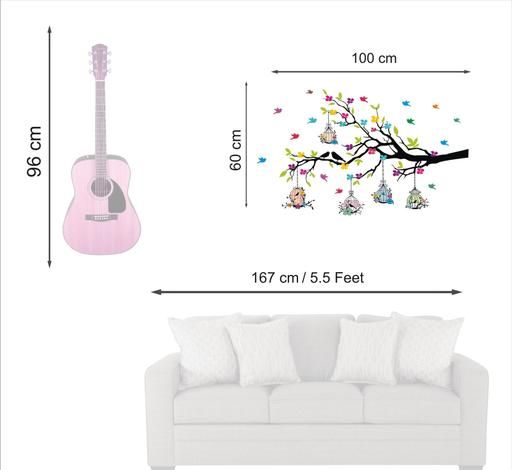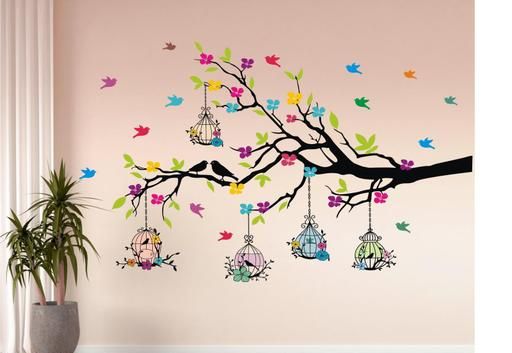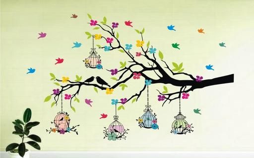 Name: - Medium - Tree Branches With Birdcage And Flower- Wall Decoration Sticker Home ( ideal size on wall: 100 cm x 60 cm ),Multicolour