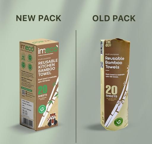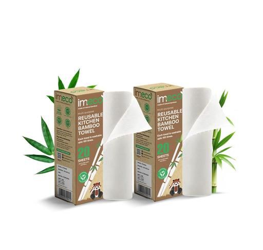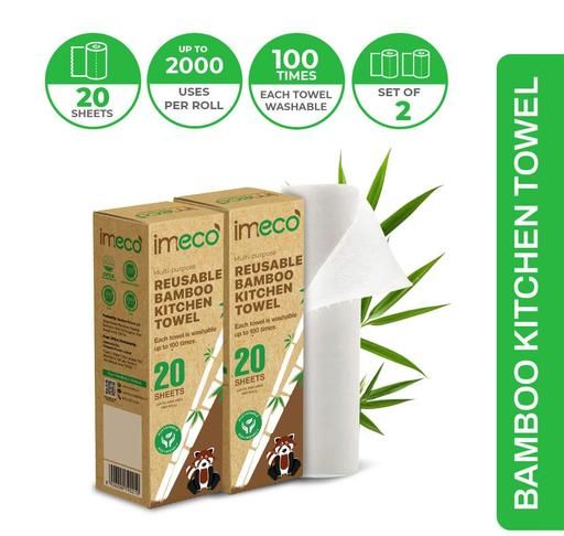 Name: IMECO Reusable Bamboo Kitchen Towels - Eco-Friendly Tissue Roll (20 Sheets) | Soft, Highly Absorbent, and Durable - Lasts Up to 2000 Uses | Better Than Paper Towel | No Trees Cut! (Pack of 2)