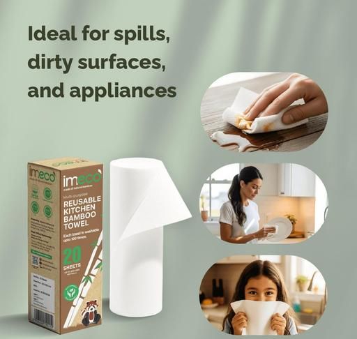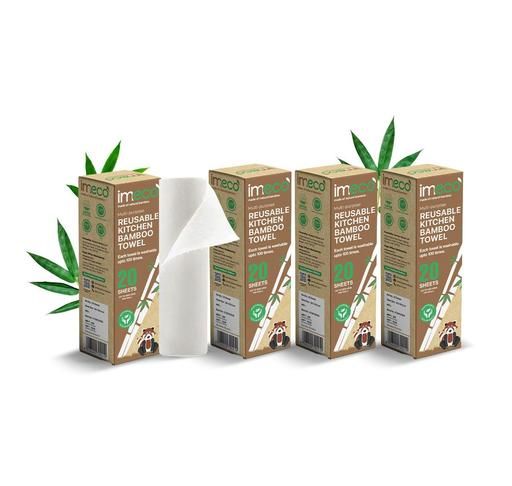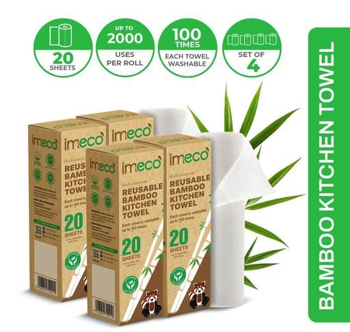 Name: IMECO Reusable Bamboo Kitchen Towels - Eco-Friendly Tissue Roll (20 Sheets) | Soft, Highly Absorbent, and Durable - Lasts Up to 2000 Uses | Better Than Paper Towel | No Trees Cut! (Pack of 4)